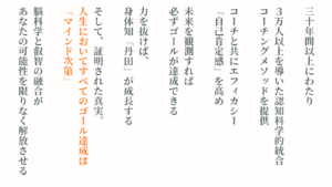 前頭前野の活性化を通じて 「自分にはできる」という確信を脳に定着させ、 ゴール達成能力を最大化し、 想像を超える成果実現を可能にします。
